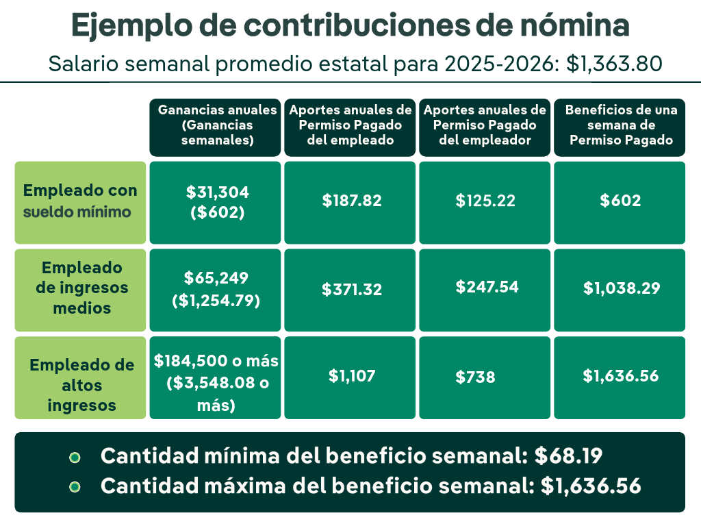 Permiso Pagado le paga cada semana mientras que usted está en permiso. Aprender más.